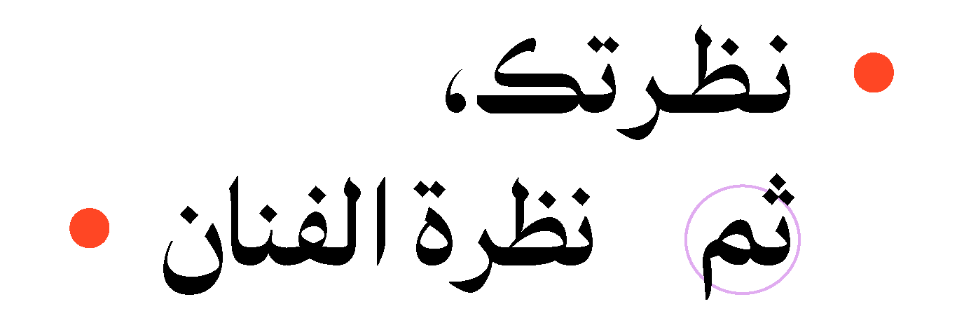 كان التباين بين تعبير عمر النجدي ومديحة عمر محط اهتمام في لقاءنا. حيث يعتمد الفنان المصري على أساليب فنية أُخرى تعزز من هيئة الحرف الأصلية عوضًا عن إعادة تشكيله بنحو جديد. تستكشف أعمال عمر النجدي التكرار كأداة بناء، حيث يستخدم حرف الألف لبناء صورة الكعبة بتركيبات عدة. كما يتحايل مستخدمًا التشابه بين هيئة حرف الألف والرقم واحد لتقديم عمل يزدهر بالتأويل الشخصي.